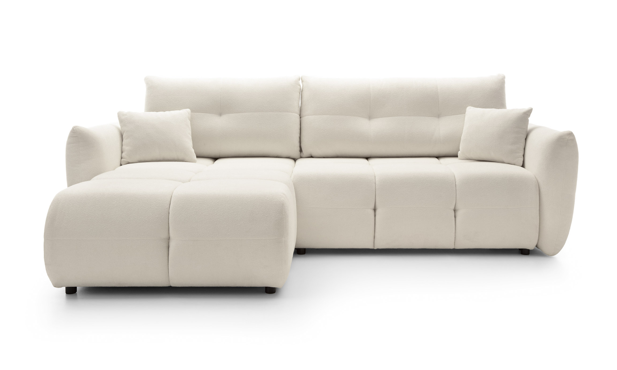 This stylish corner sofa impresses with its modern design and extraordinary functionality. Characteristic shapes, decorative stitching, soft back cushions and minimalist legs make this piece of furniture make interiors cozy and full of harmony.