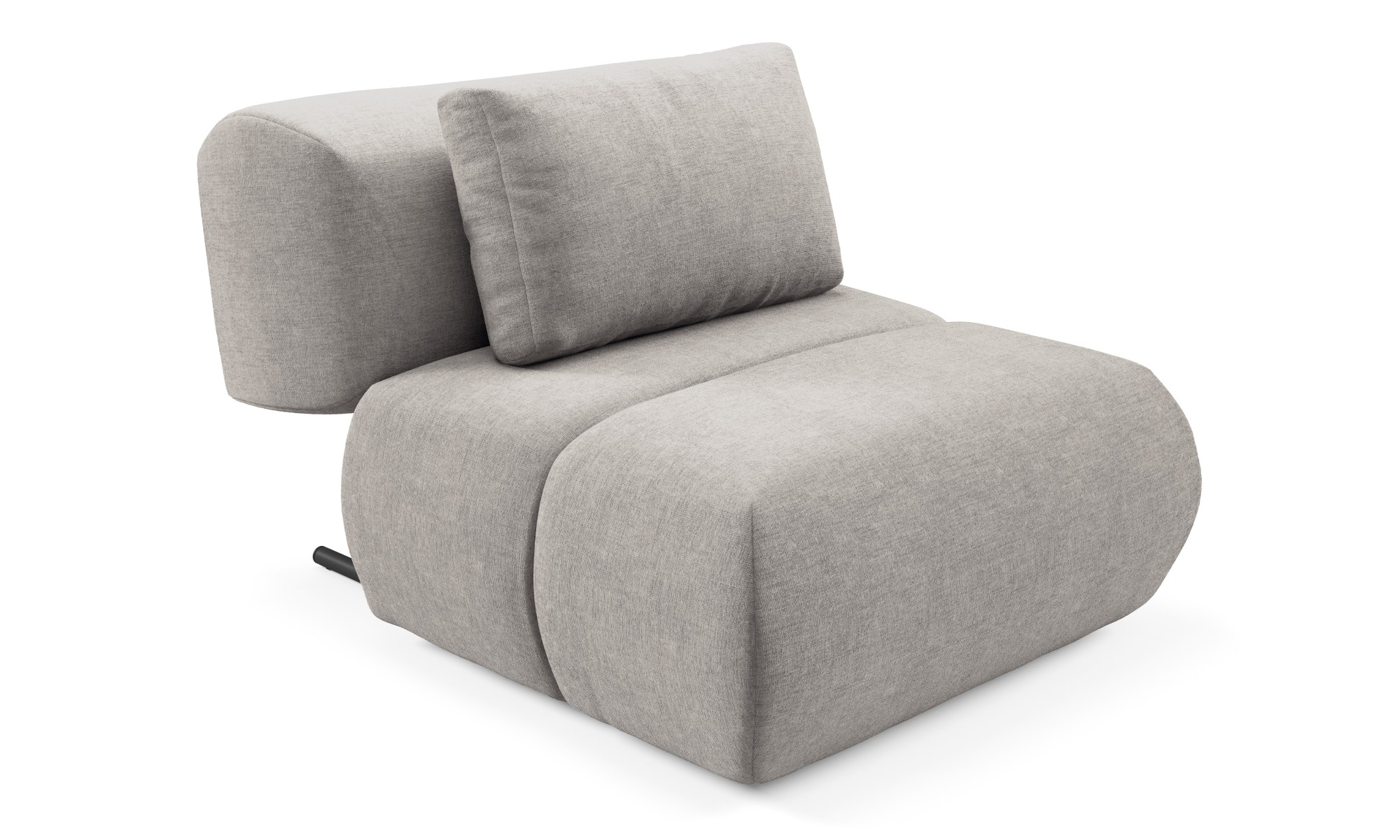 This designer and functional armchair will be not only an aesthetic addition but also a comfortable place to relax. It will make a perfect set with the Dot sofa and pouffe. Thanks to its rounded shape and decorative stitching on the seat, as well as the large, soft cushion, the room will become cozy and original. The backrest is adjustable, and when folded, the armchair can be transformed into a bed.