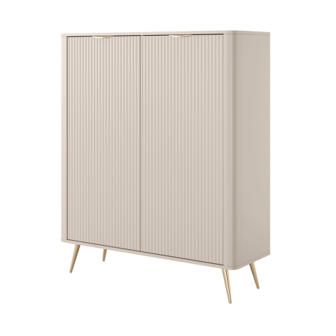 The Lante set will allow you to create an arrangement full of harmony and subtlety, and at the same time fashionable and chic. Warm beige brings peace and balance to the interior, matching perfectly with golden accents, which makes the room cozy and elegant at the same time. Rounded edges and grooved fronts add modernity and originality to the furniture. The back of the bookcase uses a beige HDF board with a wood structure. Lante is a set created for those who love modern forms and subtle, glamorous colors.