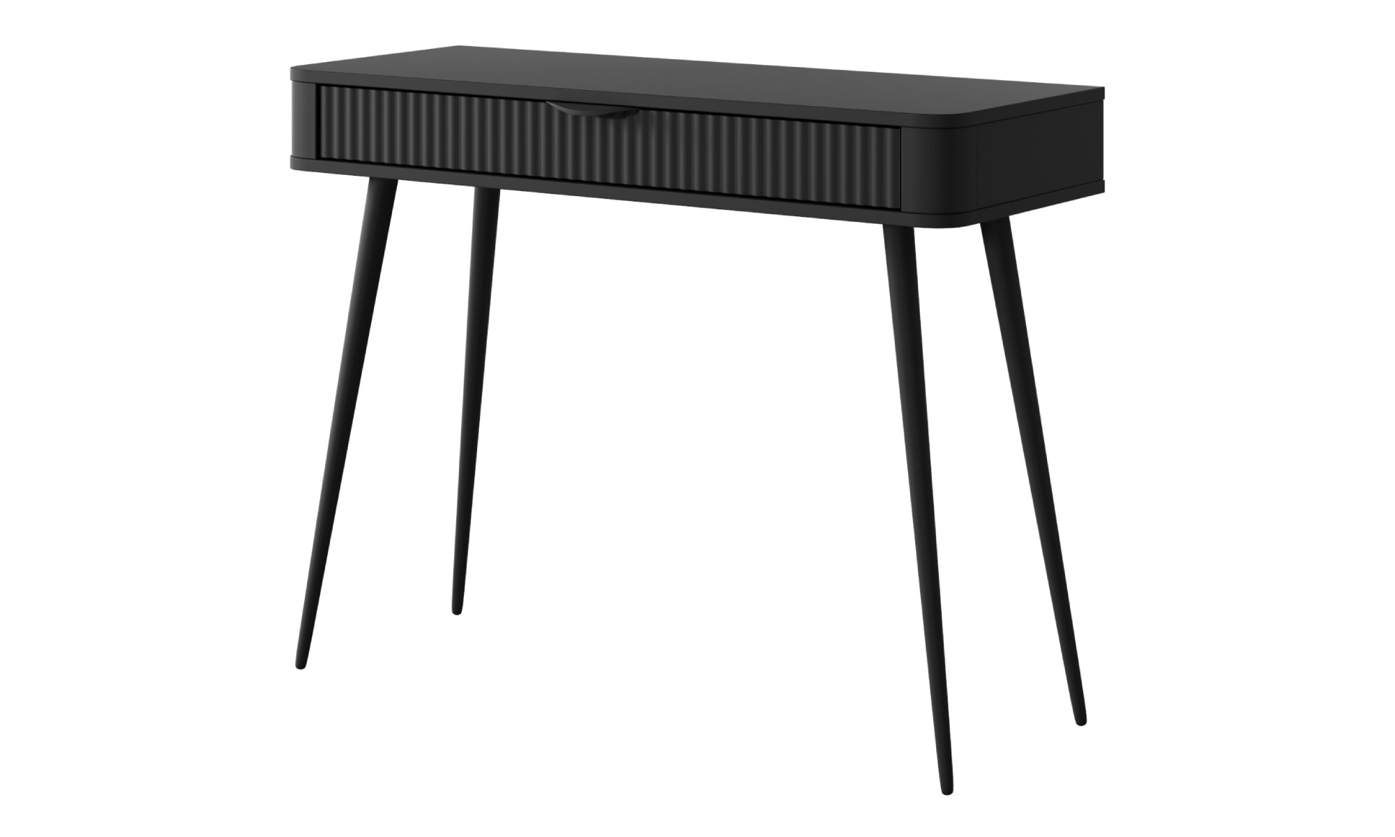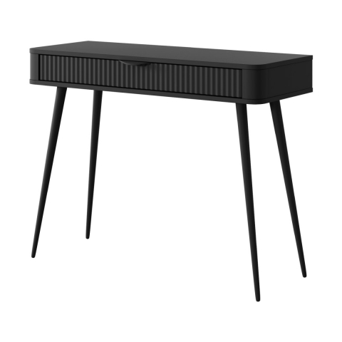 The black LANTE set is a combination of elegance and class with modernity and originality. The collection owes its unusual character to interesting, grooved MDF fronts, as well as rounded edges, subtle black handles and slender, rolled legs, adding visual lightness to the arrangement. The bookcase has a black HDF board with a wood structure. The whole thing will add elegance to your living room and bring a touch of modernity.