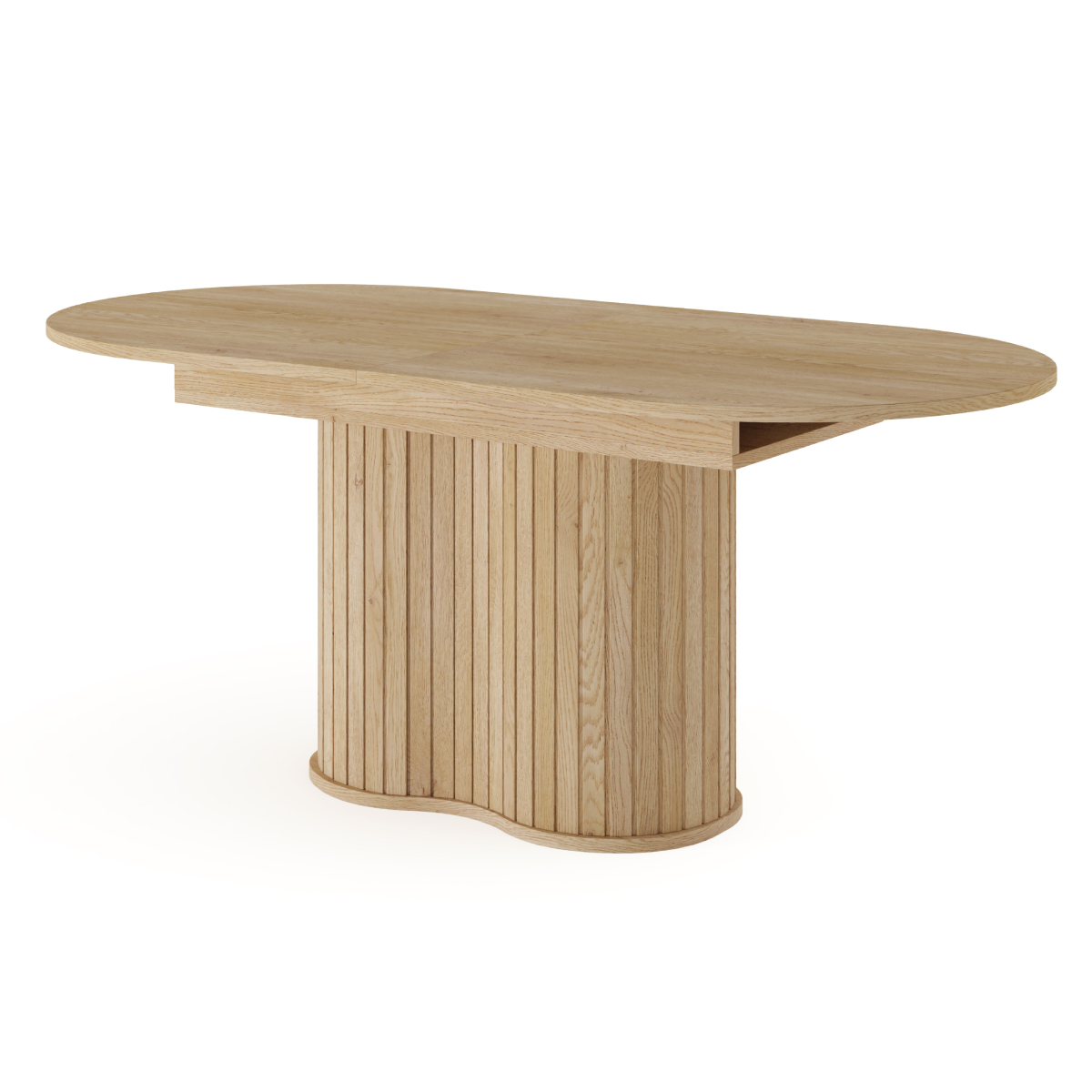 The practical, yet incredibly stylish and original Lovi collection will allow you to create an extraordinary, harmoniously composed space. The subtle, natural colors of the barista oak will brighten up your interiors and add naturalness and freshness to chem. However, what captivates most about this collection is the characteristic shape of the solids, created by rounded sides made of MDF strips. The whole is complemented by black metal legs.